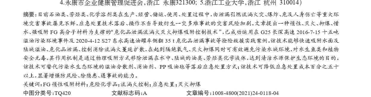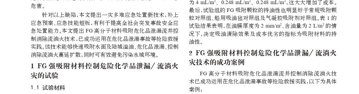 fg強(qiáng)吸附材料對(duì)?;沸孤流淌火吸附抑爆控制技術(shù)