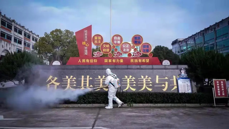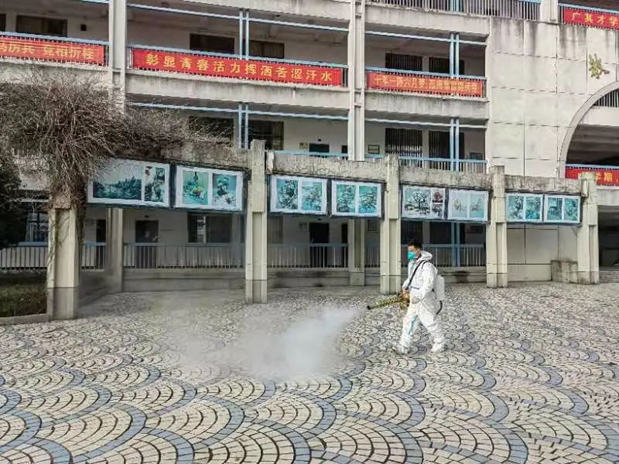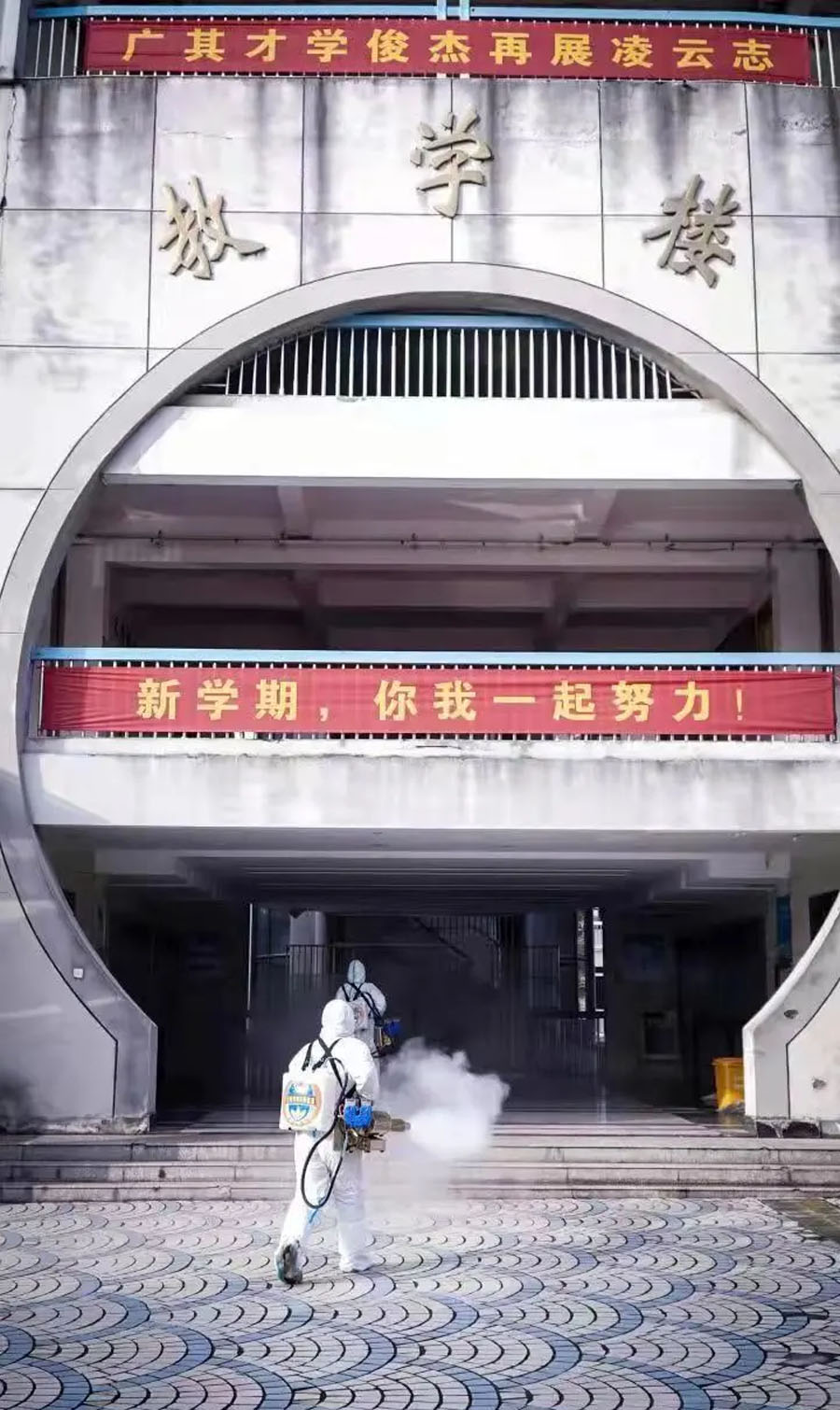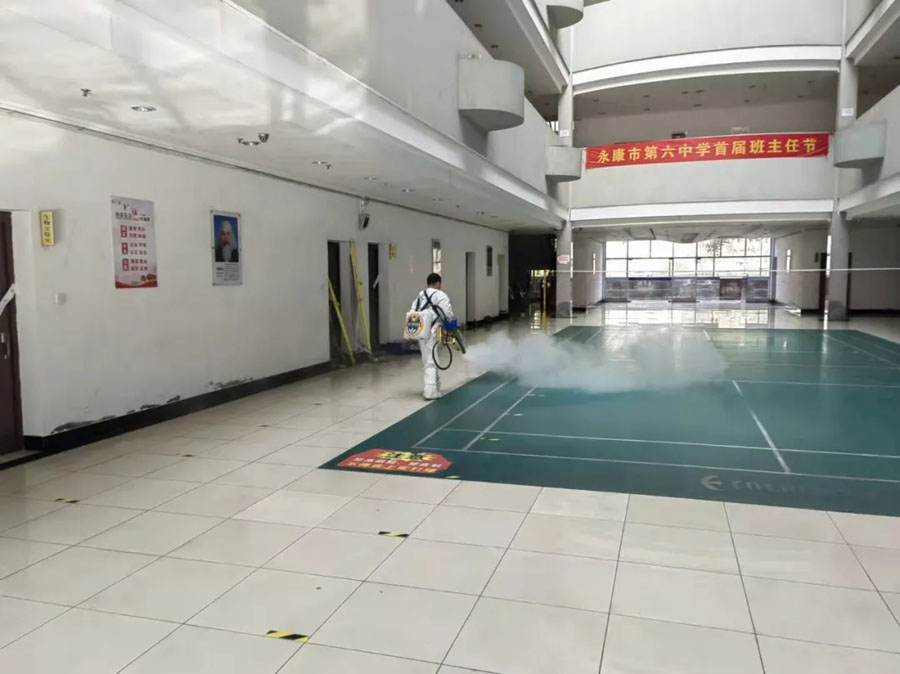 2月14日下午15:00,永康市先鋒民防救援隊(duì)來(lái)到永康六中,免費(fèi)對(duì)學(xué)校宿舍大樓、教室、教師辦公室、食堂、樓道、洗手間等場(chǎng)所進(jìn)行全方位的消殺消毒,很大限度地切斷細(xì)菌、病毒的傳播途徑,為學(xué)校開(kāi)學(xué)奠定良好的環(huán)境基礎(chǔ)。