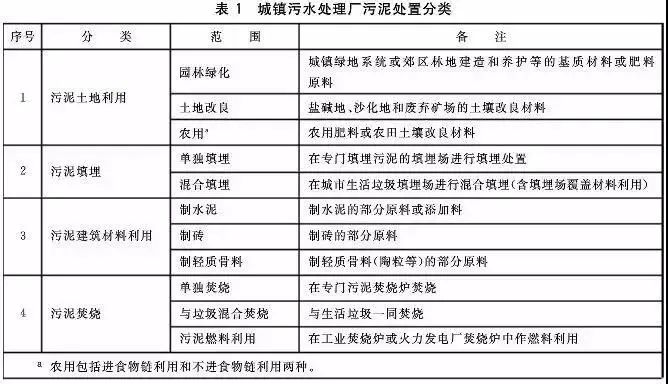 城鎮(zhèn)污水處理廠污泥處置分類(lèi)見(jiàn)表1