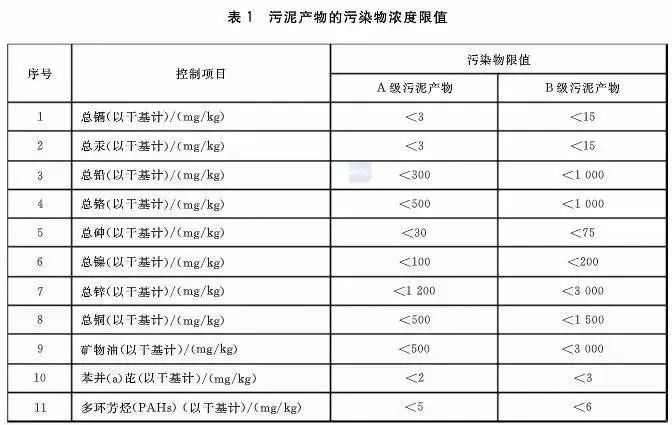 See Table 1 for sludge disposal classification of urban sewage treatment plants