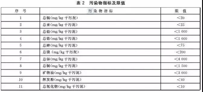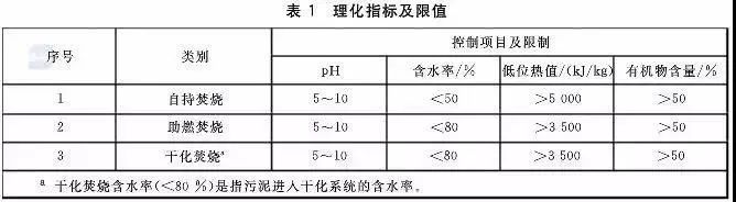 When sludge is incinerated separately, it shall meet the requirements in Table 2.