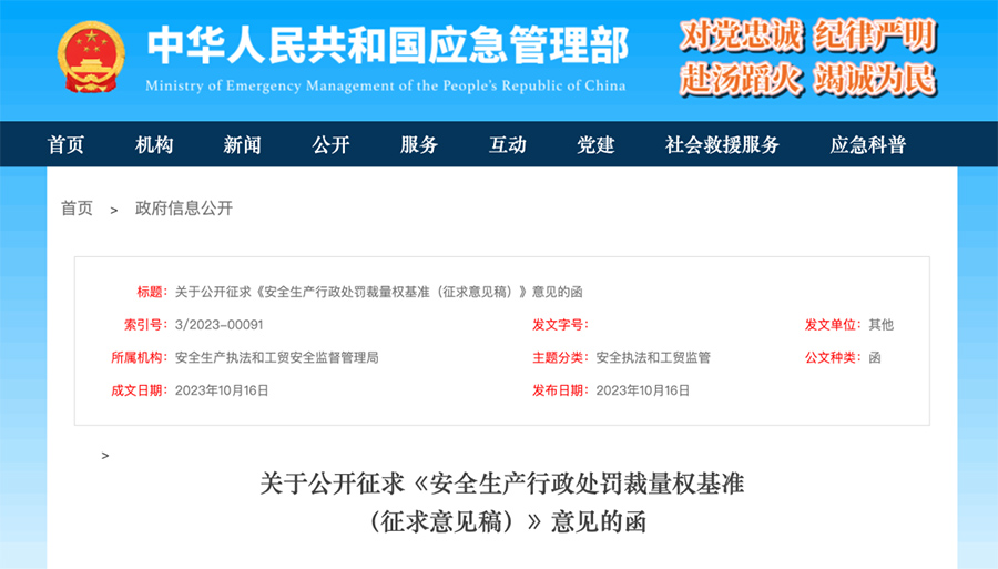 公開征求《安全生產(chǎn)行政處罰裁量權(quán)基準(zhǔn)(征求意見稿)》意見!