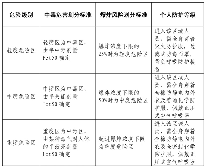 For sites with toxic substances, the delineation of toxic areas is generally based on the degree of damage caused by toxic gases to human health, and is divided into three areas: mild danger zone, moderate danger zone, and severe danger zone.