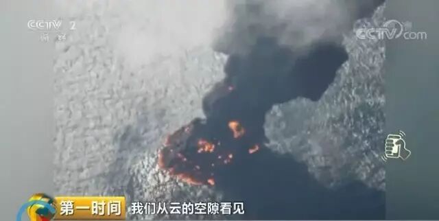 央視記者 楊理天: 我們還沒(méi)到現(xiàn)場(chǎng)就已經(jīng)看到了巨大的煙柱,說(shuō)明這個(gè)煙已經(jīng)穿過(guò)了云層,而我們現(xiàn)在透過(guò)魚(yú)眼窗,看到桑吉輪已經(jīng)完全沉沒(méi)了,海面上只有桑吉輪的殘留物和殘油在燃燒,而且形成了10平方公里的油污帶,前兩天才3平方公里,這個(gè)溢油情況非常嚴(yán)重。