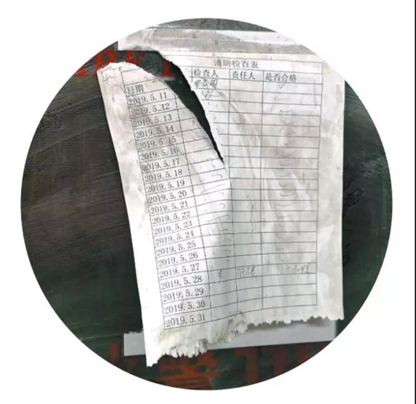 檢查人員提出,讓企業(yè)員工演示倉(cāng)庫(kù)起火后的操作。沒(méi)想到,員工打開(kāi)消火栓后,水壓不足,從水管噴出的水疲軟無(wú)力、射程不合要求。經(jīng)實(shí)地查看,檢查人員發(fā)現(xiàn)有的消火栓早已銹蝕,有一個(gè)消火栓上面覆蓋著一層厚厚的灰塵,其檢修記錄單顯示近一次檢修時(shí)間是2019年5月。