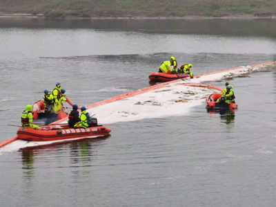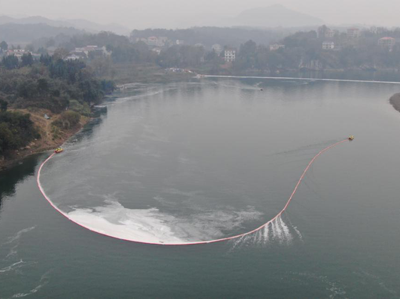 圖為13日水面溢油吸附飽后基本已聚集,全體隊(duì)員集中精力分區(qū)塊將其打撈上岸,化解次生水環(huán)境災(zāi)害事故風(fēng)險(xiǎn),保障下游兩岸居民生活飲水的安全。