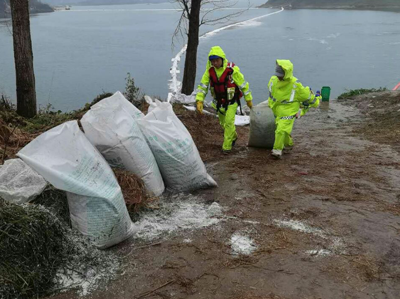 12月11日當(dāng)?shù)乜h委及相關(guān)領(lǐng)導(dǎo)在臨時(shí)指揮部召集應(yīng)急救援商會(huì),鑒于當(dāng)?shù)貞?yīng)急物資及技術(shù)措施尚不能有效采用物理吸附方式徹底清除水上油污物。根據(jù)石化系統(tǒng)專(zhuān)家向上級(jí)請(qǐng)示后向縣委領(lǐng)導(dǎo)建議,屬地應(yīng)急安監(jiān)部門(mén)立即向浙江省永康市應(yīng)急部門(mén)求援。具有豐富水上環(huán)境污染治理能力的浙江中翼先鋒救援隊(duì)獲悉后,即刻調(diào)配精兵強(qiáng)將,率領(lǐng)滿(mǎn)載著化學(xué)污染吸附顆粒、吸附拖欄的應(yīng)急專(zhuān)用車(chē)輛,連夜馳援一千公里的資江水系。經(jīng)過(guò)十多小時(shí)的長(zhǎng)途奔襲,第二天一早應(yīng)急救援物資就送達(dá)資江污染岸邊。中翼先鋒救隊(duì)由大隊(duì)長(zhǎng)董陳法率領(lǐng),王開(kāi)法、胡紅哥、胡林漢、樊斌豪共五人組成突擊隊(duì),顧不上疲勞休息,立即在當(dāng)?shù)乜h委應(yīng)急局領(lǐng)導(dǎo)下,與藍(lán)天救援隊(duì)的志愿者們一起,卸下FG吸油顆粒劑、吸附拖欄等應(yīng)急物資。大家協(xié)同作戰(zhàn),立即駕駛沖鋒舟,將三百多米的吸附拖欄,投放到寬闊的江面上,將大面積污染江水的潤(rùn)滑油進(jìn)行圍堵收攏,使污染物縮小到可控的范圍之內(nèi)。然后再將潔白無(wú)毒的中翼FG吸附顆粒拋撒在吸附拖欄內(nèi)。通過(guò)物理吸附的作用模式,潤(rùn)滑油立即被吸附成固體狀態(tài)。這樣,救援隊(duì)隊(duì)員采用撈戽,就很方便地將化學(xué)液體污染物打撈上岸。經(jīng)過(guò)湘浙兩地的志愿者們二晝夜奮戰(zhàn),終于將其徹底清除,恢復(fù)了遼闊的資水碧清狀態(tài),做到了目測(cè)無(wú)油漬的滿(mǎn)意效果,也沒(méi)有任何人身傷亡及魚(yú)類(lèi)中毒事故發(fā)生。確保下游沿江城市水域環(huán)境、水生漁類(lèi)不受其害。據(jù)測(cè)算,此次成功的湘浙兩地聯(lián)合應(yīng)急救援活動(dòng),可節(jié)約應(yīng)急物資人才成本近至少數(shù)百萬(wàn)元。屬地縣委書(shū)記和應(yīng)急局局長(zhǎng)一直在應(yīng)急處置現(xiàn)場(chǎng)親自指揮,並在任務(wù)完成后,致函對(duì)浙江省永康市中翼先鋒救援隊(duì)千里馳援表示衷心感謝。資江應(yīng)急環(huán)境保部門(mén)通過(guò)此次實(shí)戰(zhàn)協(xié)同操作,對(duì)中翼FG吸附產(chǎn)品的優(yōu)異性能用途及低廉的成本,一致贊不絕口。同時(shí)致電向中翼公司救援隊(duì)中翼先鋒表示衷心感謝。
