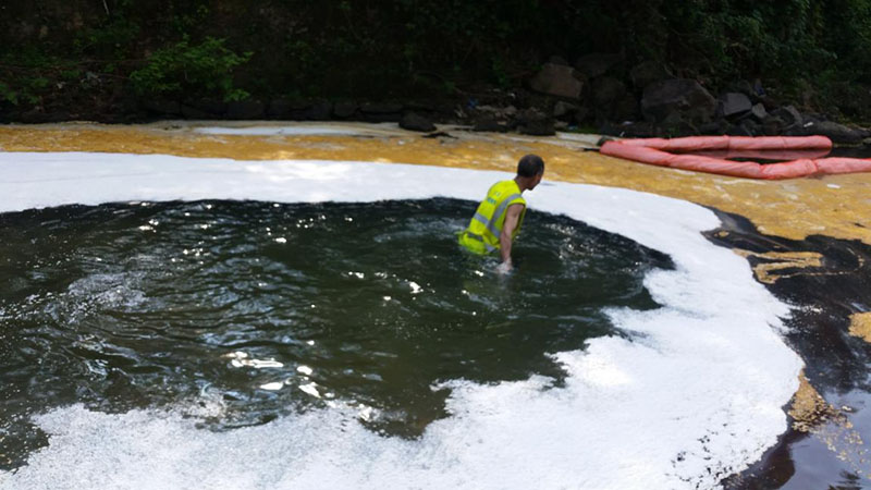 2.救援人員在(上園水壩)油污水中作業(yè) 。